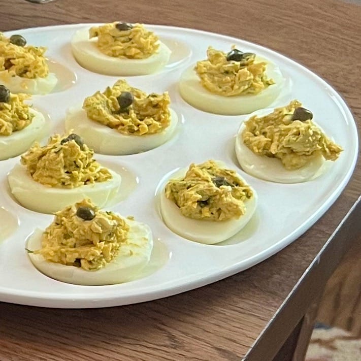 - Once filled, top each egg with a caper or two. Voila! You’re done.